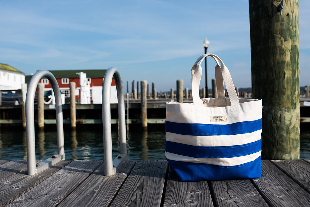 Our Vintage Main Beach Bag is a stylish large tote built for a day at the beach or on the water. It features the ability to snap close and has an interior zipper pocket and key hook to keep all your valuables safe and secure. The bag is built with #8 Duck Canvas body and Cotton Webbing handles for strength and water resistance while still being machine washable. It’s often touted as the best beach bag money can buy!