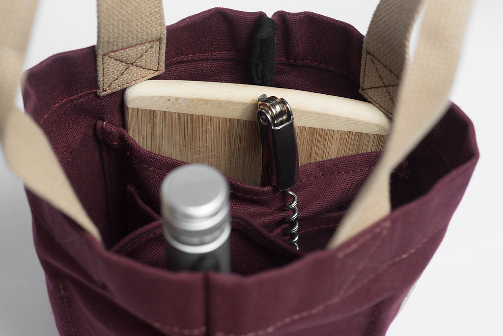 The Vintage Wine Tote is not just any ordinary wine tote! It’s built with a #8 Duck Canvas body, cotton webbing handles in Buff-tan, and our vintage label for a sleek look and superior durability. The Vintage Wine Tote features interior dividers and pockets for up to 2 Wine Bottles, Cheese Boards, Glasses, and more! Additionally, the interior dividers and pockets can be folded to the side and the bag can be used as a regular tote when not transporting picnic goodies!