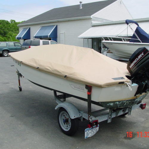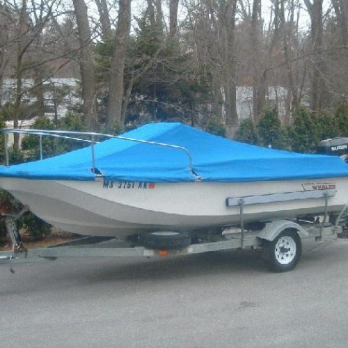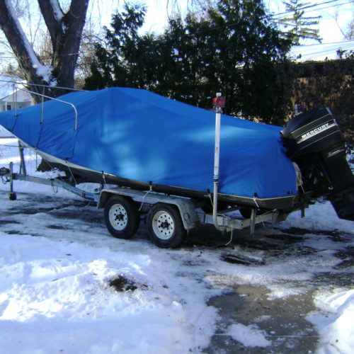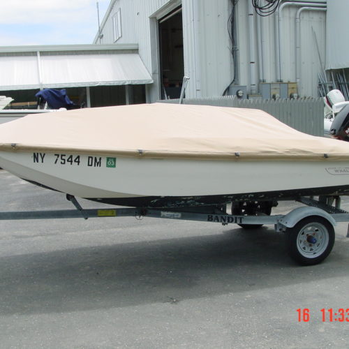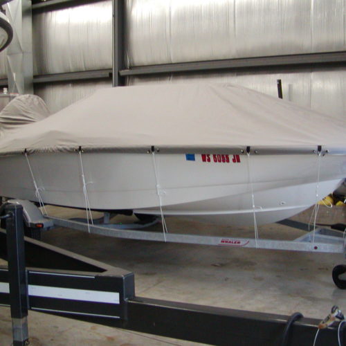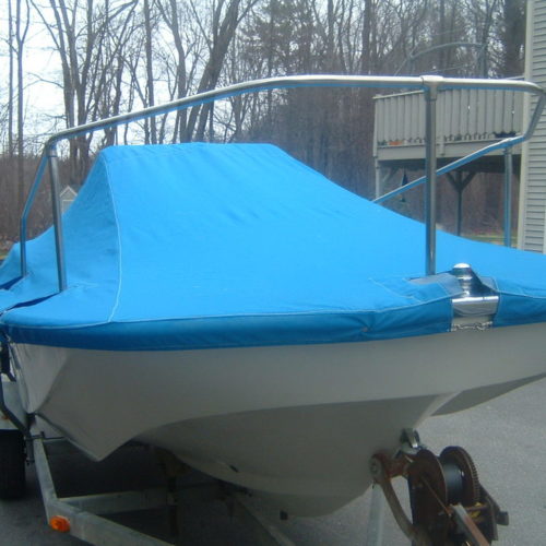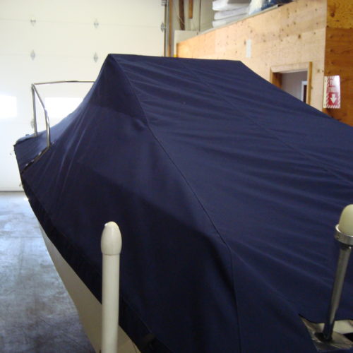 When necessary our mooring covers are designed with an integrated support system to ensure proper rain run off. All of our mooring covers are designed with vinyl reinforcement patches on all identifiable chafe areas to strengthen the cover and increase its life. Additionally, we include webbing loops on many covers to allow the cover to be secured to a trailer.